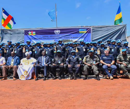 Some 180 Rwandan Police peacekeepers serving under the UN Multidimensional Integrated Stabilization Mission in Central African Republic (MINUSCA) were on Wednesday, October 11, awarded the UN service medals in recognition of their sacrifice to protect civilians.
