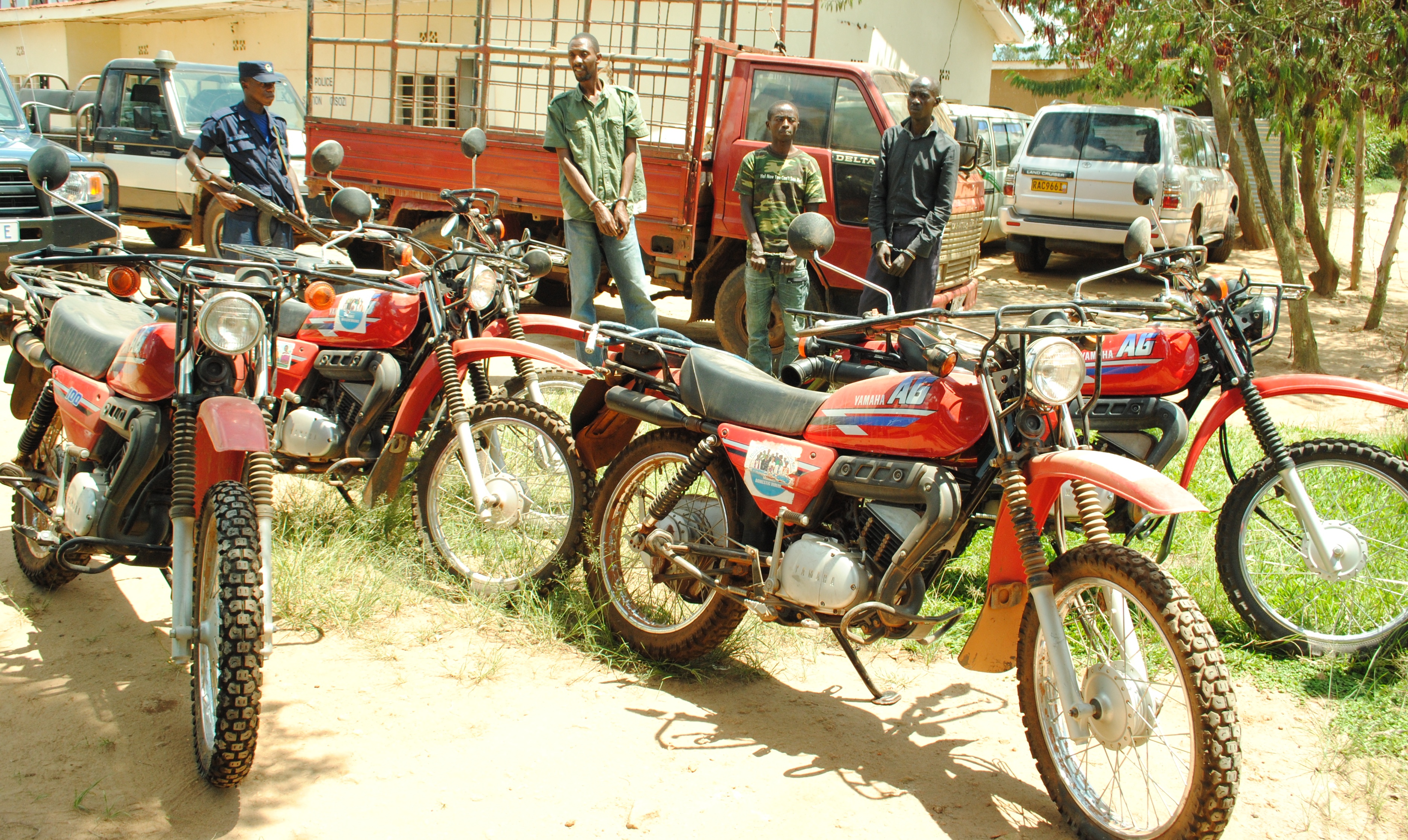 Aba bafashwe harimo uwari usanzwe acunga umutekano kuri iryo shyirahamwe, uwashakiye moto isoko, n’uwatwaraga imodoka yari yaje gupakira izo moto, bakaba bafungiye kuri sitasiyo ya Polisi ya Gisozi.