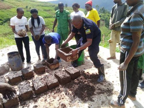 The communal exercise to lay the bricks also involved the youth and local leaders. The bricks will be used to construct three houses for thw affected families in Rwankojo Cell.