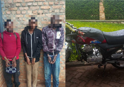 "The suspects were pushing the motorcycle, when they saw security personnel, they abandoned it and run away. However, residents shared information on their identities, and they were arrested at the house where they live, with the logbook of the same stolen motorcycle," SP Twizeyimana explained.