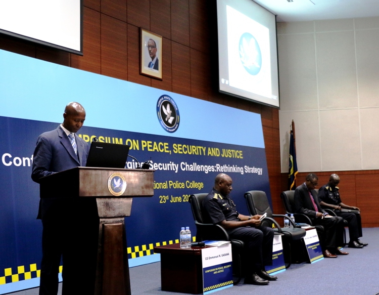 The symposium held at the Rwanda National Police headquarters in Kacyiru was part of the Police Senior Command and Staff Course programme organized ahead of the graduation of the fourth intake of 31 Police students from 10 African countries.