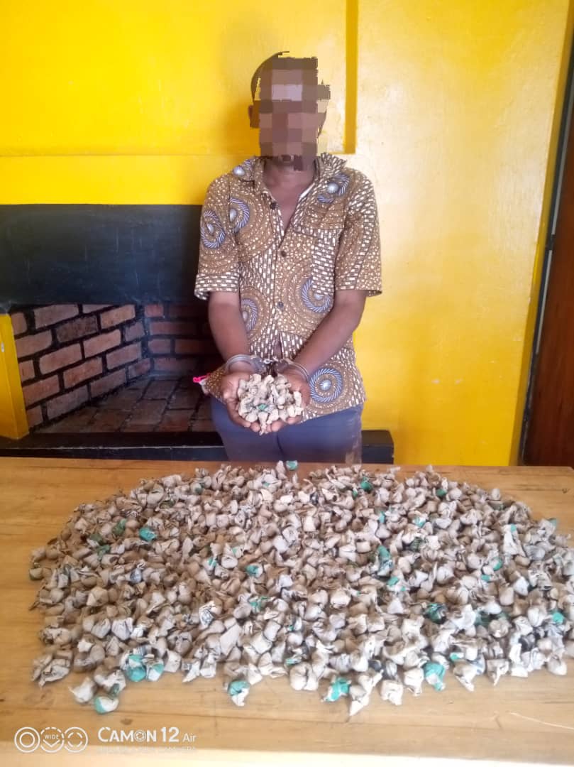 A suspected drug dealer was arrested by the Police in Ngororero District on Thursday, July 20, with 995 pellets of cannabis.