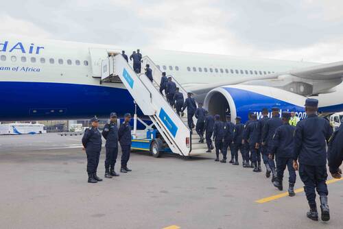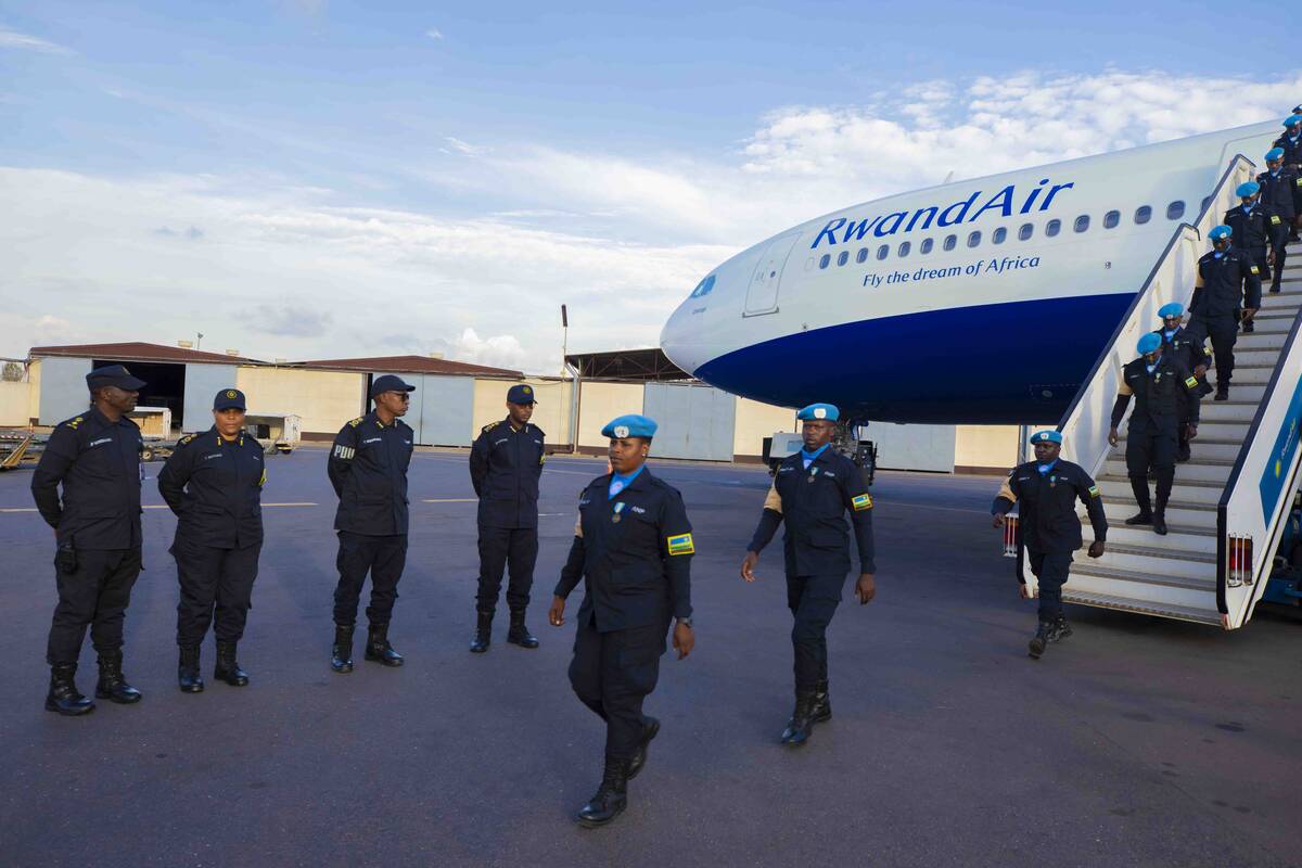Commissioner of Police (CP) William Kayitare oversaw the rotation of the contingents on behalf of the RNP leadership, at Kigali International Airport.