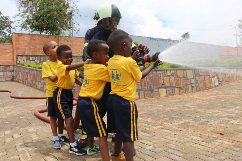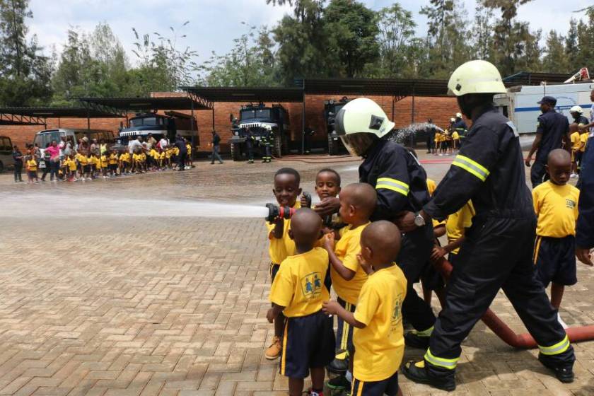 Assistant Commissioner of Police (ACP) Jean Baptiste Seminega, the Commanding Officer for Fire and Rescue Brigade gave them tips on how to prevent fire outbreak in their homes such as not playing with electric gadgets, and showed them some of the equipment the force uses to put out fire or to response in case of disasters.