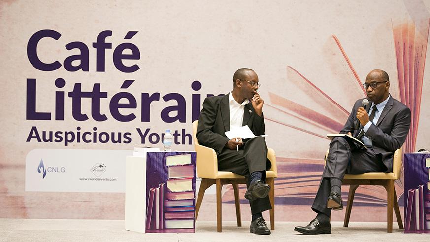 Dr Jean Damascene Bizimana, Executive of Secretary of Rwanda National Commission for the Fight Against Genocide(right), at the Kwibuka24 Cafe Litteraire.