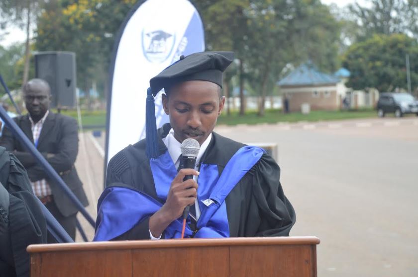 The Head of Department of Civil Engineering Shema Fred, presenting to the Chancellor students to be awarded Advanced Diploma in Civil Engineering.