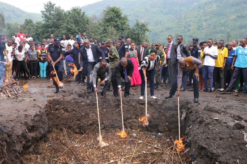 The campaign against drugs in Rubavu also include public destruction of about 420kgs of cannabis and over 1900 liters of illicit gin, all valued over Rwf47 million.