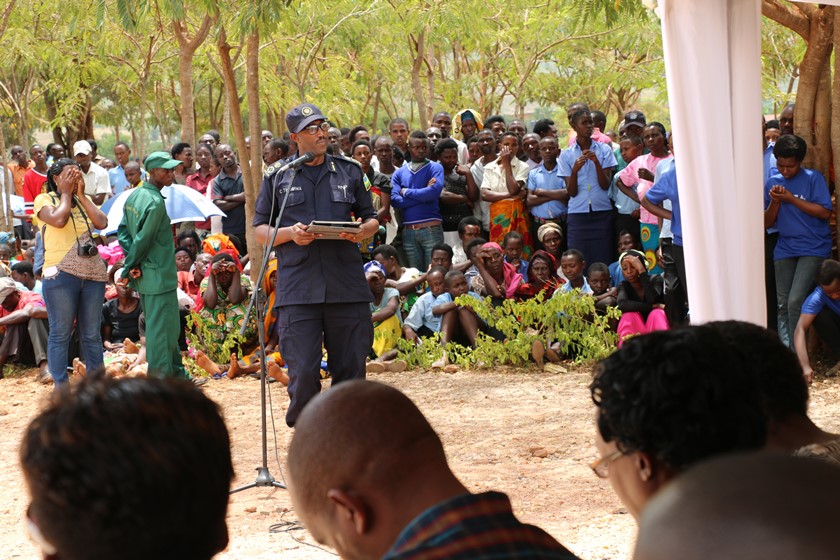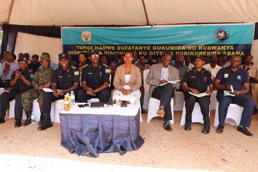 Governor Kazayire, Senior Police officers and residents follow proceedings during the event in Rwinkwavu.