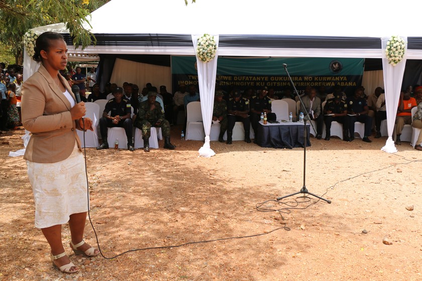 Eastern Province Governor, Judith Kazayire addressing residents of Rwinkwavu during the sensitisation campaign.