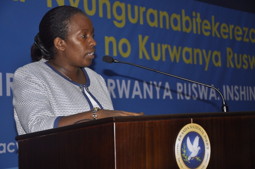 The Permanent Secretary in the Ministry of Local Government, Odette Uwamariya speaking at end of a one-day consultative meeting on fighting corruption held yesterday at RNP General Headquarters.