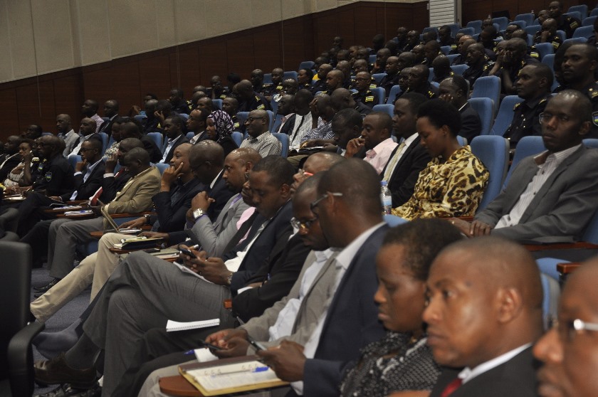 Officials attending a meeting on fighting corruption at police headquarters in Kacyiru.