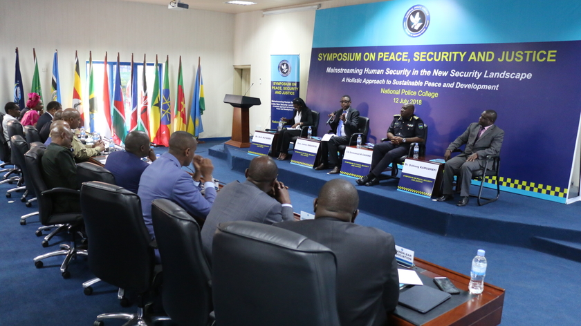 The symposium, which is part of the ‘Police Senior Command and Staff Course’ at the National Police College (NPC) based in Musanze District, was held under the theme: “Mainstreaming Human Security in the new Security Landscape: A Holistic Approach to Sustainable Peace and Development.”