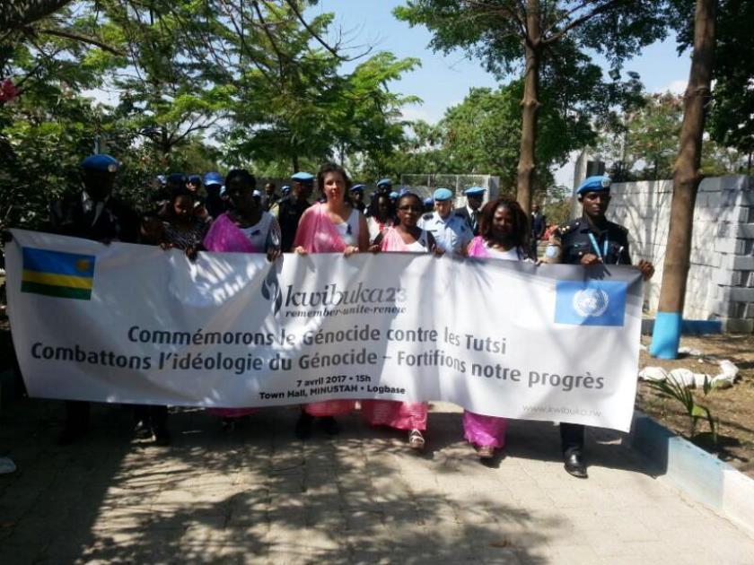 The Rwandan police and military peacekeepers serving under the United Nations Mission in South Sudan (UNMISS), Abyei (UNSFA) and Haiti (MINUSTAH), on Friday, joined the rest of Rwandans and friends of Rwanda to pay tribute to over one millions innocent lives that perished during the 1994 Genocide against the Tutsi.