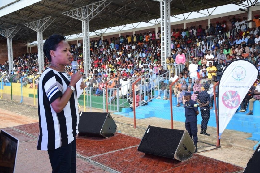 The Minister of Youth speaking during the campaign against drugs in Muhanga.