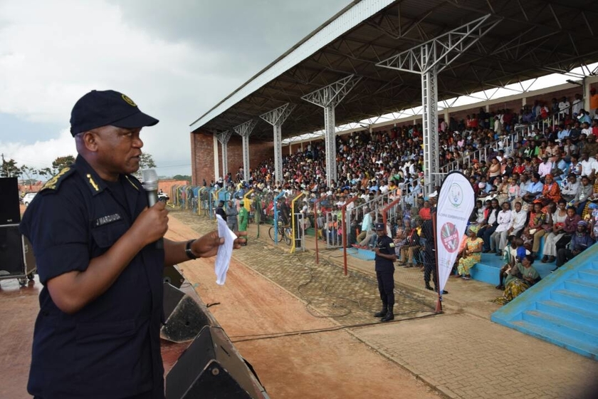 DIGP Juvenal Marizamunda addressing residents of Muhanga, yesterday.