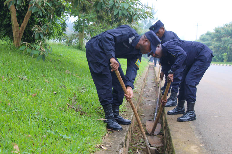 The life-saving act followed a monthly communal work--Umuganda--where Police officers cleared shrubs and water trenches in Kacyiru.
