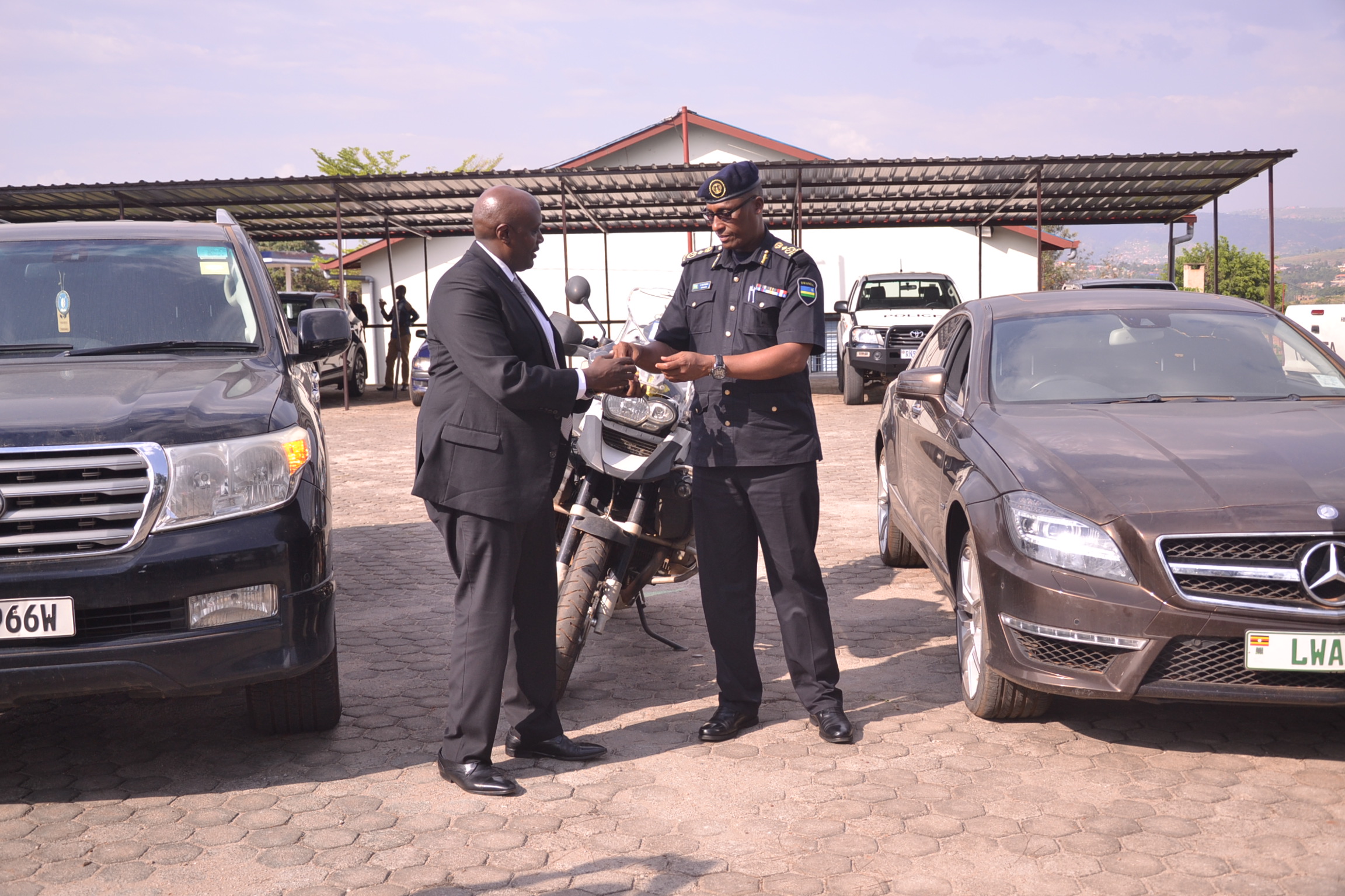 The vehicles were handed over to Uganda's High Commissioner to Rwanda, Richard Kabonero by the Commissioner for Operations and Public Order, Commissioner of Police (CP) Emmanuel Butera in an event held at the RNP General Headquarters in Kacyiru.