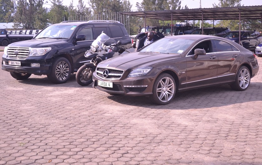 Vehicles handed over are; Toyota Land Cruiser plate number UAS 966W, Mercedes Benz with customised registration number LWASA4 and BMW motorcycle plate number UEM 072P.