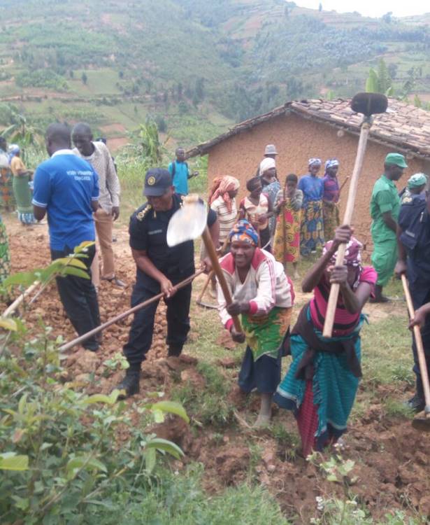 In both sites, Police joined residents in Umuganda to rehabilitate roads, water channels and to renovate houses for the disadvantaged families.