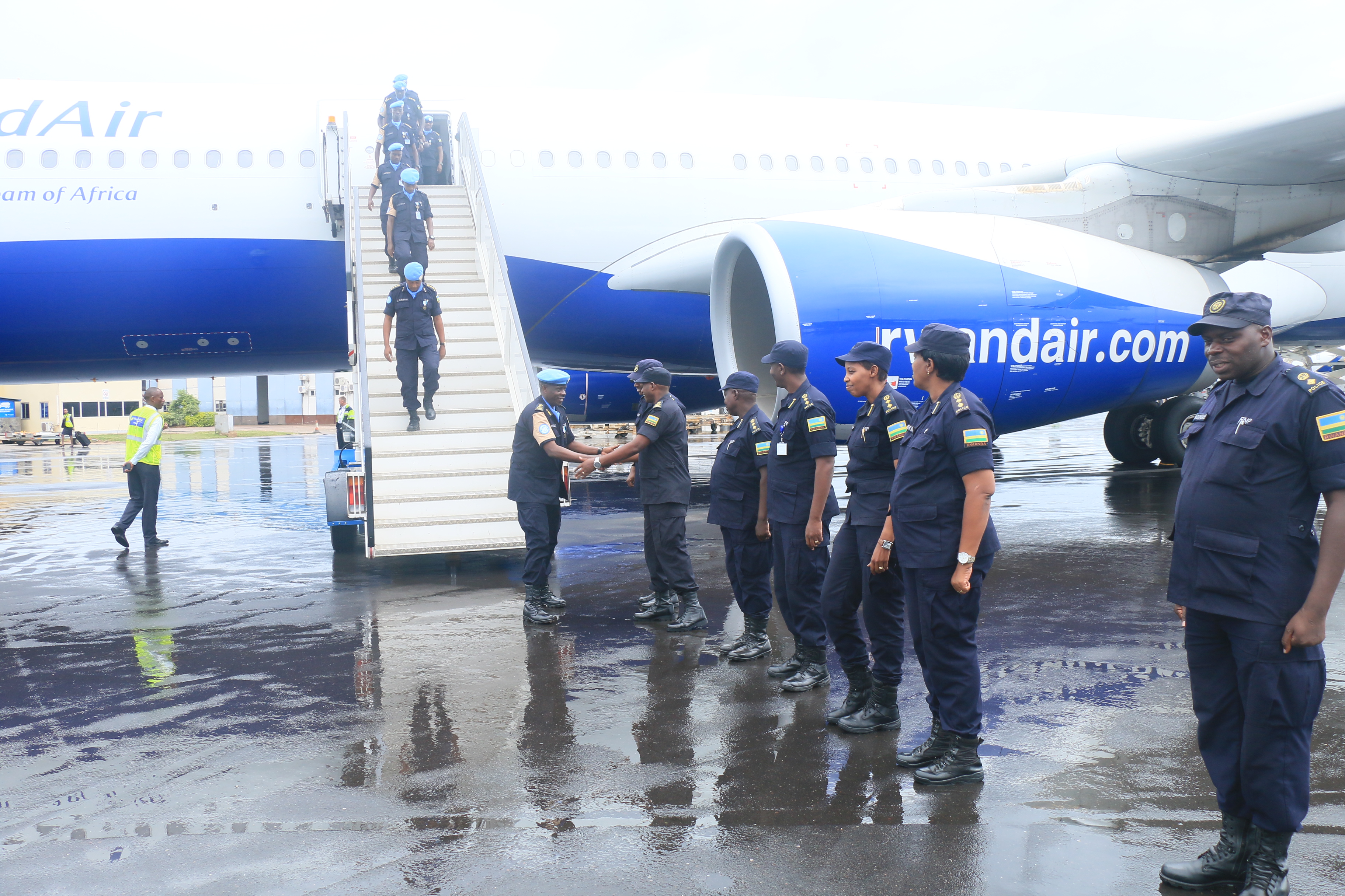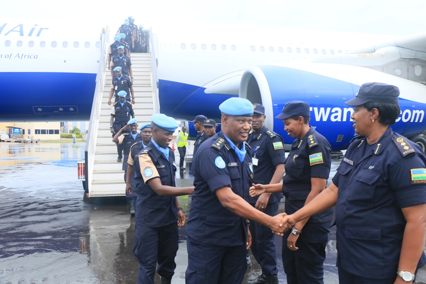 Two Formed Police Unit (FPU) contingents composed of 280 officers, left Kigali International Airport yesterday morning to replace the same number, who also returned home later in the evening aboard the national carrier – RwandAir – after a successful one year of tour-of-duty.