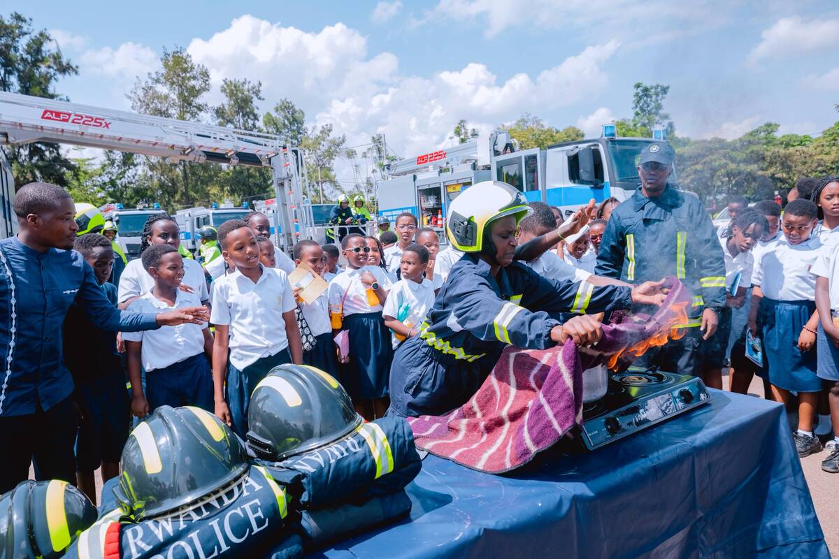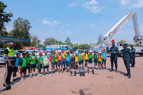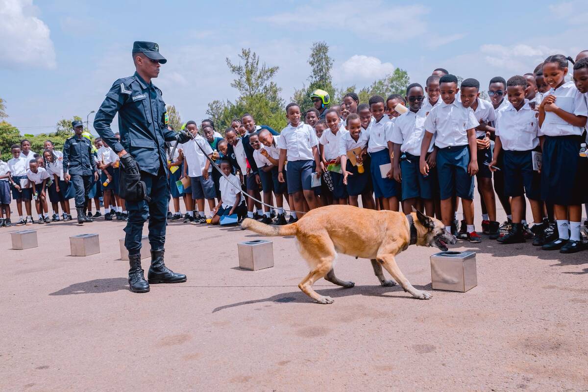 Students from Saint Gabriel Primary School, Rise to Shine Nursery and Primary School, and École Saint Anne de Kigali, along with their teachers toured various RNP specialized facilities, including Fire and Rescue Brigade (FRB), Canine Brigade, Traffic and Road Safety (TRS) and Command and Coordination Centre.