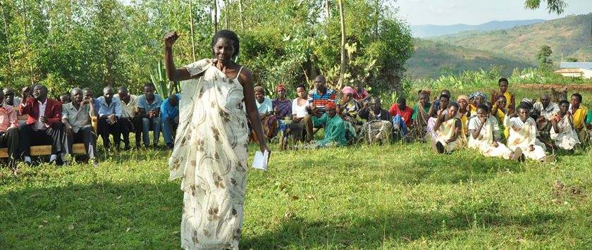 A resident of Muganza cheering during Umugoroba w'ababyeyi.