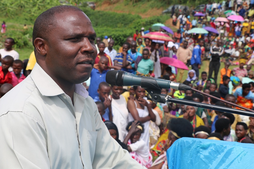 Minister Germain Kamayirese addressing residents of Giti in Gicumbi.