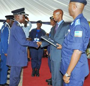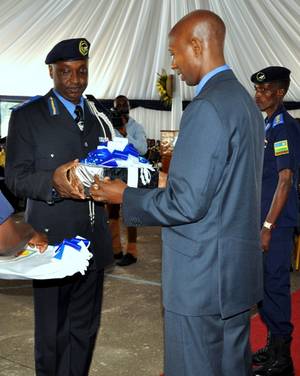 Best overall student, CP Vianney Nshimiyimana receives his award from the Minister of Internal Security