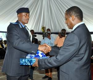 ACP Joel Aguma from Uganda, receiving his certificate from the Minister