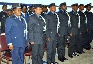 (L-R) Ministers of Defence, Education and Internal Security, IGP and the NPC deputy Commandant
