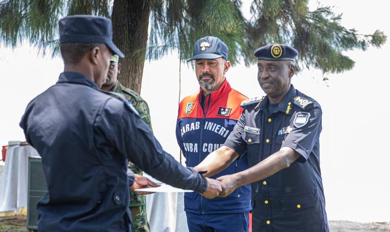 The second phase of the highly demanding course was facilitated by trainers from Scuba Diver Centre in Genoa as part of the cooperation between Rwanda National Police (RNP) and the Italian Carabiniere.