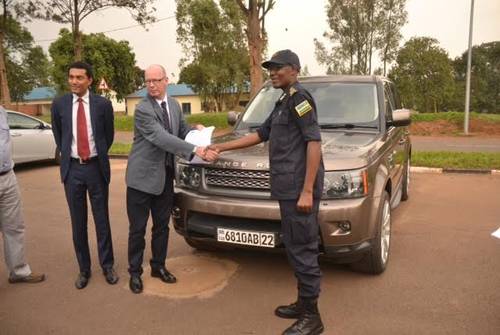 Assistant Commissioner of Police (ACP) Tony Kuramba, Umuyobozi w’ibijyanye na Polisi Mpuzamahanga n’ubutwererane muri Polisi y’u Rwanda, niwe watanze iyi modoka iherekejwe n’impapuro ziyiranga, abishyikiriza David Ward ,impuguke mu by’iperereza ikora mu kigo cyitwa UK National Crime Agency kiri muri Kenya.
