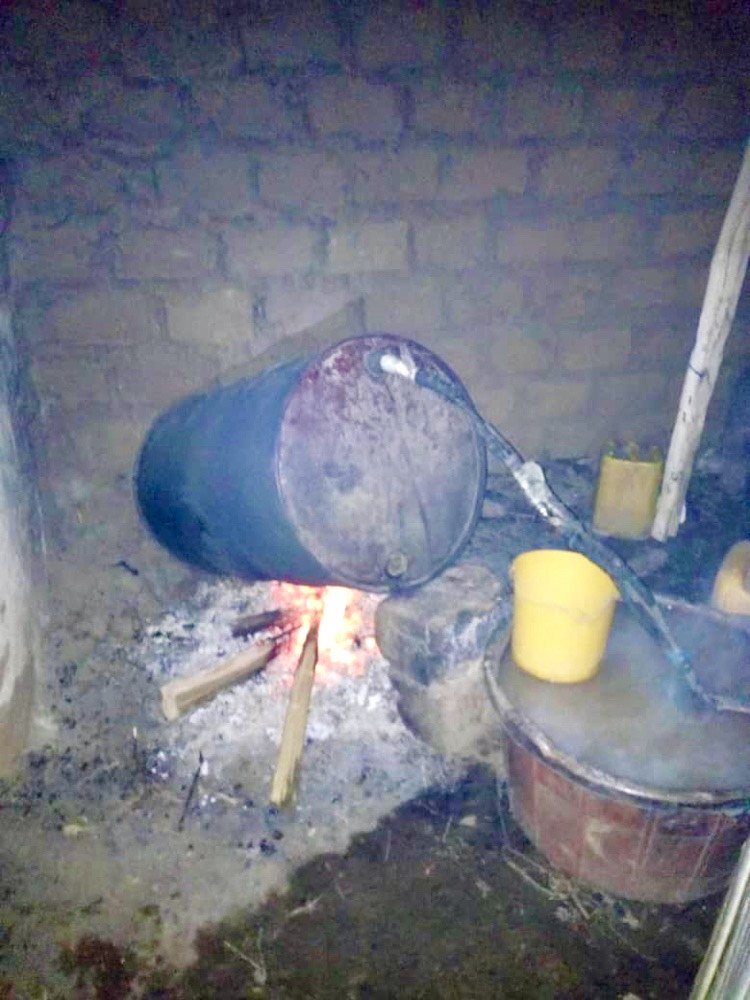 Police in Ruhango District arrested one Andrée Mugwaneza, 36, on Sunday, after he was found distilling Kanyanga, a crude illicit gin.