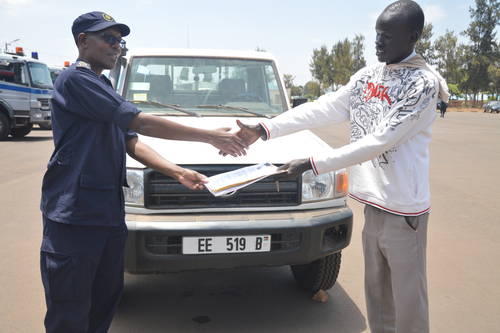 Assistant Commissioner of Police (ACP) Tony Kulamba, commissioner for Interpol and cooperation at RNP, handed over the vehicle to Deng Jacob Garang at the force’s General Headquarters in Kacyiru.
