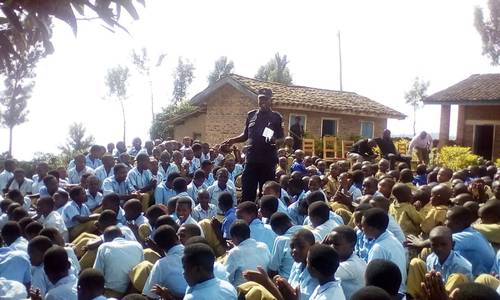 Speaking at GS Rugali, the District Community Liaison Officer of Musanze, Inspector of Police (IP) Viateur Ntiyamira tutored students on effects of drug abuse and GBV and urged them to use the knowledge they acquired in transforming communities around the school.