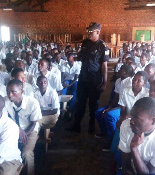 In Ngororero, the District Police Commander, Senior Supt. Marc Gasangwa headed the anti-crime awareness campaign in EAV Kivumu and ES Nyange where he urged over 800 students and their teachers in the two schools to uphold the principles of community policing during their holidays.