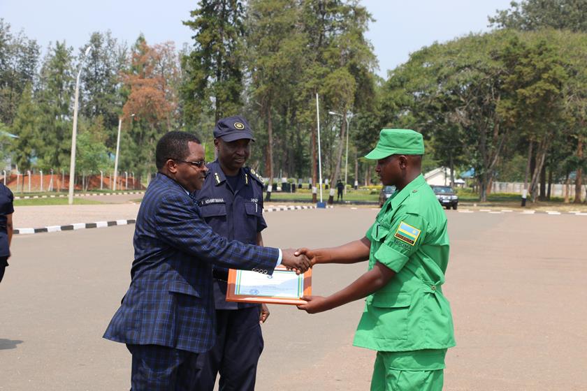 The pass-out was presided over by the State Minister in the Ministry of Local Government in charge of Socio-Economic Development, Vincent Munyeshyaka.