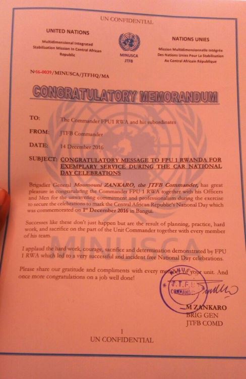 “I applaud the hard work, courage, sacrifice and determination demonstrated by RWA-FPU1 which led to very successful and incident-free National Day celebrations,” Gen Zankaro wrote in his message to the Unit.