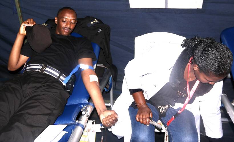 Police officers donate blood