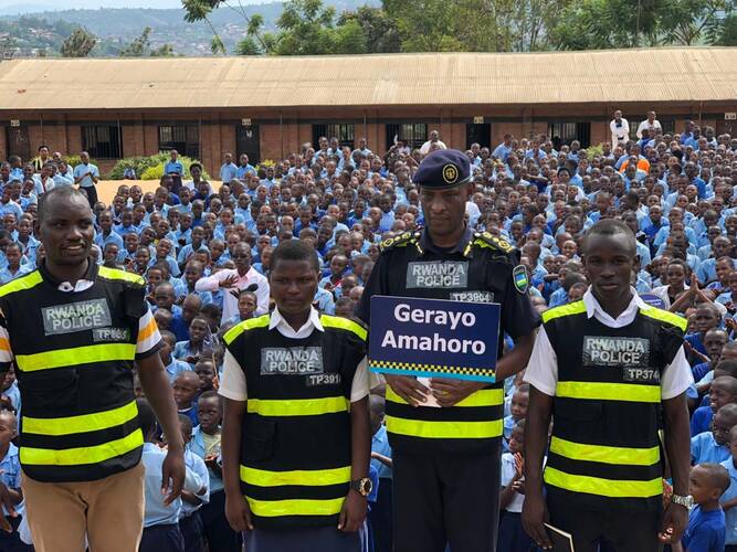 [AMAFOTO]: Ubukangurambaga bwo kurwanya impanuka zo mu muhanda bwakomereje mu bigo by’amashuri