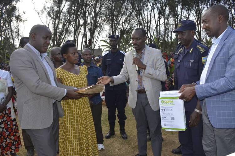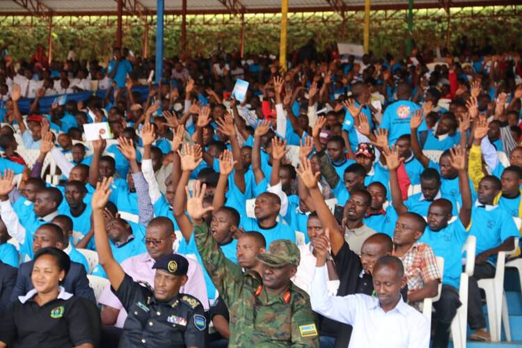[AMAFOTO]: Rwamagana: Abanyeshuri bitegura kuba ba ofisiye bato muri Polisi bahaye ubwisungane mu kwivuza imiryango 250 itishoboye