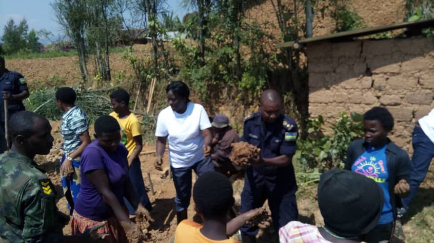 Polisi n’Urubyiruko rw’Abakorerabushake bakoze umuganda wo kubakira imiryango ine itishoboye