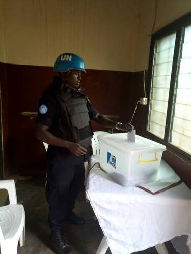 [AMAFOTO]: Abapolisi b’ u Rwanda bari mu butumwa bwo kubungabunga amahoro bazindukiye mu gikorwa cy’amatora y’abadepite