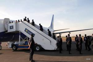 Ku isaha ya saa kumi n'ebyiri n'igice z'igitondo kuri uyu wa kane, nibwo abapolisi b' u Rwanda buriye indege ya Rwandair berekeza mu gihugu cya Centrafurika.