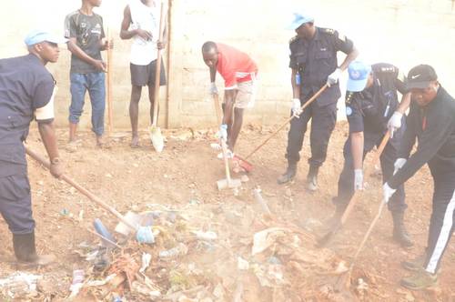 Itsinda ry’abapolisi b’u Rwanda bari mu butumwa bw’umuryango w’abibumbye bwo kubungabunga amahoro muri Centrafrika (MINUSCA) bifatanyije n’abaturage mu muganda ugamije kwimakaza umuco w’isuku aho batuye.