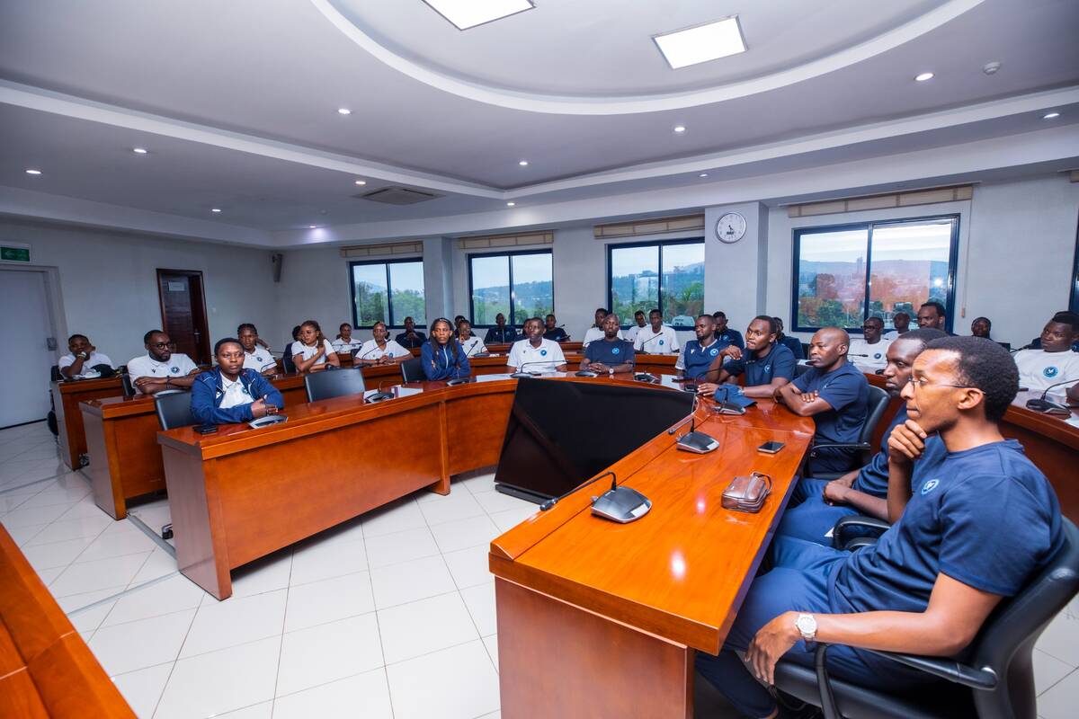 Iri tsinda rigiye kwerekeza mu gihugu cya Uganda rigizwe n’abagera kuri 44 barimo abakinnyi, abatoza n'abayobozi b'amakipe yombi ya Polisi y’u Rwanda.