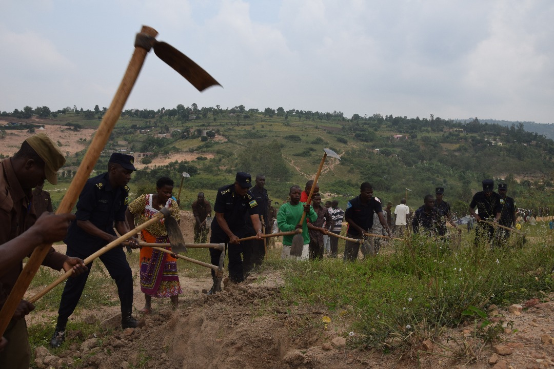 Kuri uyu wa Gatandatu tariki 16 Ukuboza Polisi y’u Rwanda yifatanyije n’abaturage bo mu mudugudu wa Kami mu murenge wa Kinyinya mu karere ka Gasabo mu gikorwa cy’umuganda wo gukora ahangijwe n’ibikorwa by’ubucukuzi bw’umucanga.