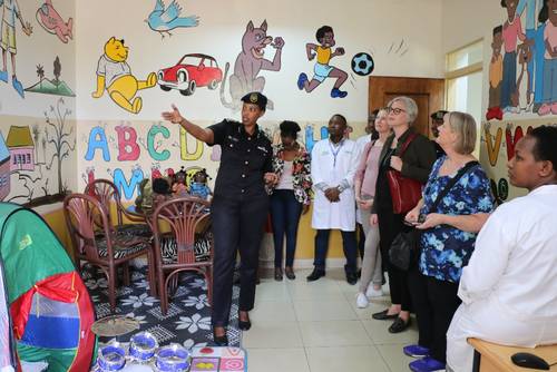 Umuyobozi w’ishami rishinzwe ubutwererane no kwakira abashyitsi muri Polisi y’u Rwanda Assistant Commissioner of Police (ACP) Linder Nkuranga wabakiriye, yabasobanuriye ko iki kigo cyakira abakorewe ihohoterwa na serivisi zitangirwamo kuva uwakorewe ihohhoterwa yinjira kugeza atashye.