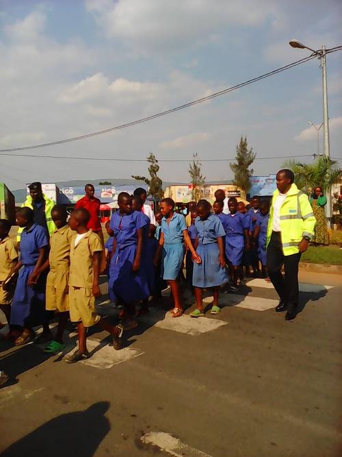 Yababwiye kujya bahagarika ibinyabiziga biri mu byerekezo byombi by’umuhanda bakoresheje akaboko kugirango bihagarare maze babone uko bambuka nta nkomyi kandi bagategereza kugeza bihagaze, bityo bakabona kwambuka.