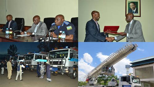 Ku gicamunsi cyo kuri uyu wa kane tariki ya 16 Mata, Minisiteri y'Ubutegetsi bw'Igihugu yashyikirije Polisi y'u Rwanda imodoka 4 zigenewe kuzimya inkongi z'umuriro, uyu muhango ukaba wabereye ku cyicaro gikuru cya Polisi y'u Rwanda ku Kacyiru.